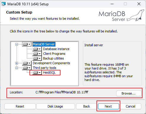 마리아 DB 설치 시 서드 파티 도구로 'HeidiSQL' 이 설치 됨. 사용 안한다면 아래 그림과 같이 바꿔주면 될 것