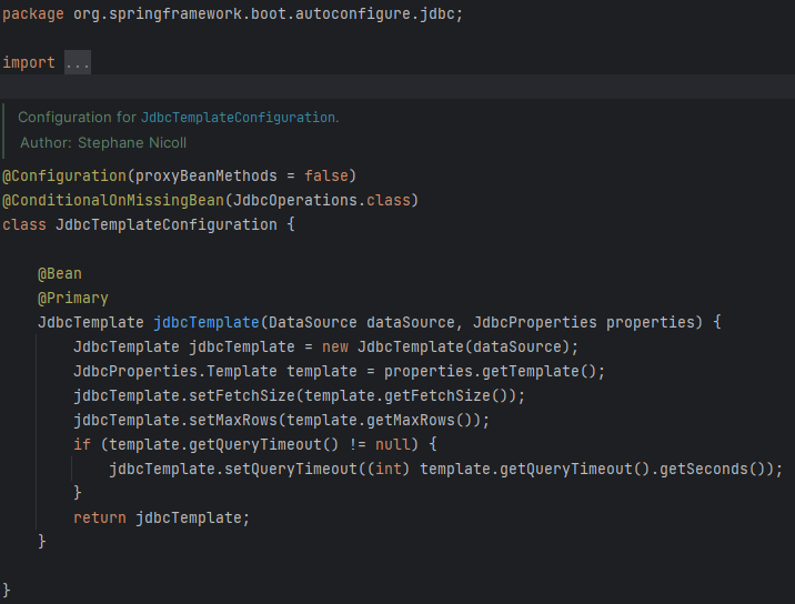 - @ConditionalOnMissingBean(JdbcOperations.class)