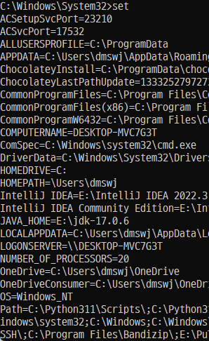 - System.getenv() : OS 전체 환경 변수를 Map으로 조회