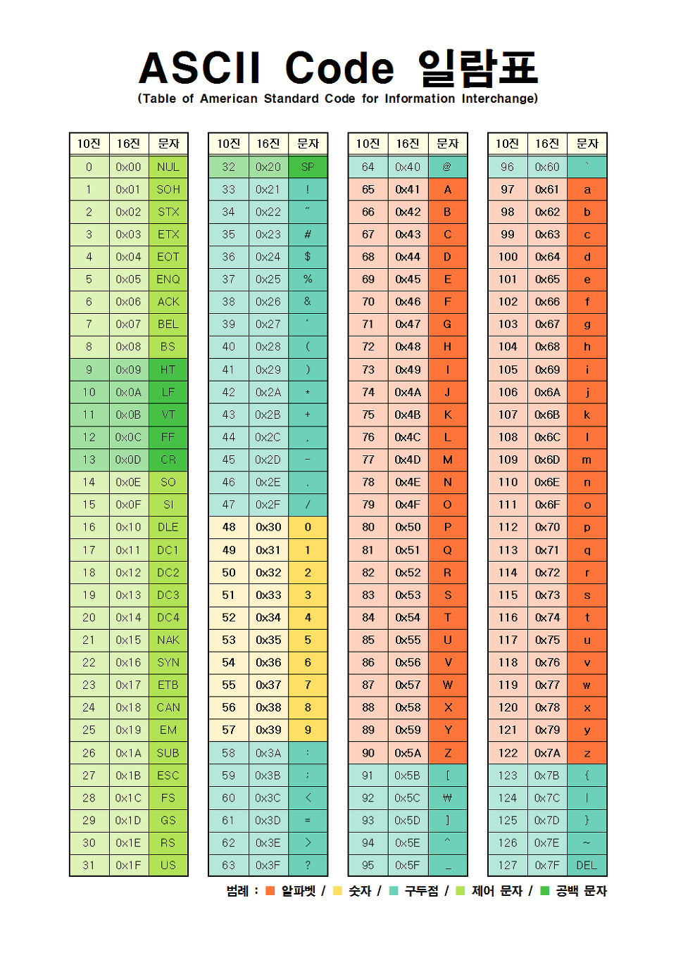 문자 인코딩: 문자를 0과 1로 변환하는 과정