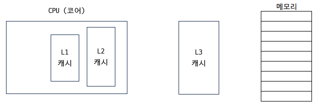 - 캐시 미스 (cache miss): 캐시 메모리에 저장했지만, 예측이 틀려 메모리에서 필요한 데이터를 직접 가져와야 하는 경우 / 캐시 미스가 자주 발생하면 성능이 떨어짐